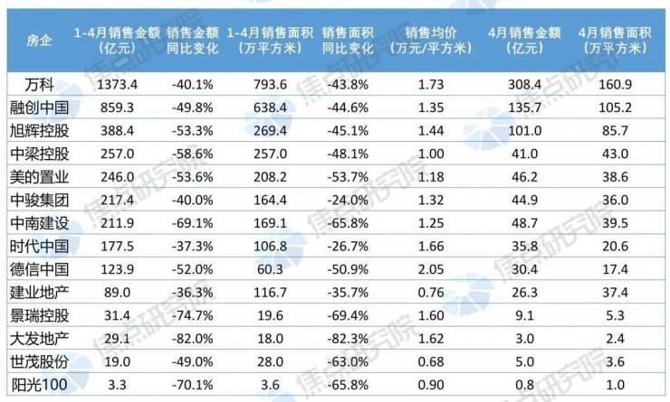 1、多家房企发布1-4月销售业绩,平均同比下降超50%。(详见附注2)