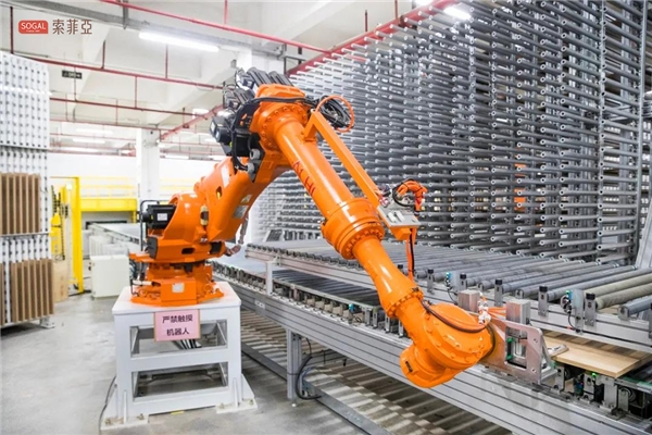 索菲亚家居工业4.0生产车间实现了高度信息化与数据化生产,高效、智能、连通是索菲亚工业4.0车间保障产品质量的关键,从原材料到生产、包装,全过程做到不落地不经人手。先进的生产设备,柔性的生产模式,解决了批量生产与个性定制之间的矛盾,工业4.0车间拥有自主知识产权,实现了生产车间的无人化智能操作。索菲亚315成为定制家具行业4.0的智造标杆,不断推动家居制造行业的数字化转型进程。
