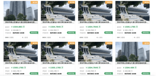 深圳宝能城10套房将法拍,单套起拍价约1505万