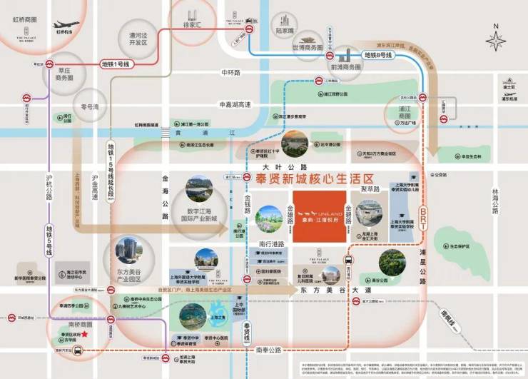 商业配套方面:项目周边约6公里范围内,聚集龙湖金汇天街、奉贤天街、南桥百联中心三大商业综合体。