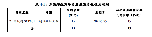 北京城建集团表示,本期超短期融资券募集资金将用于偿还发行人即将到期债务融资工具。具体情况如下: