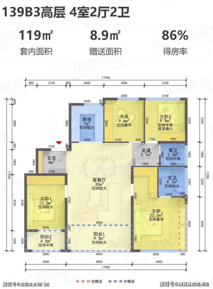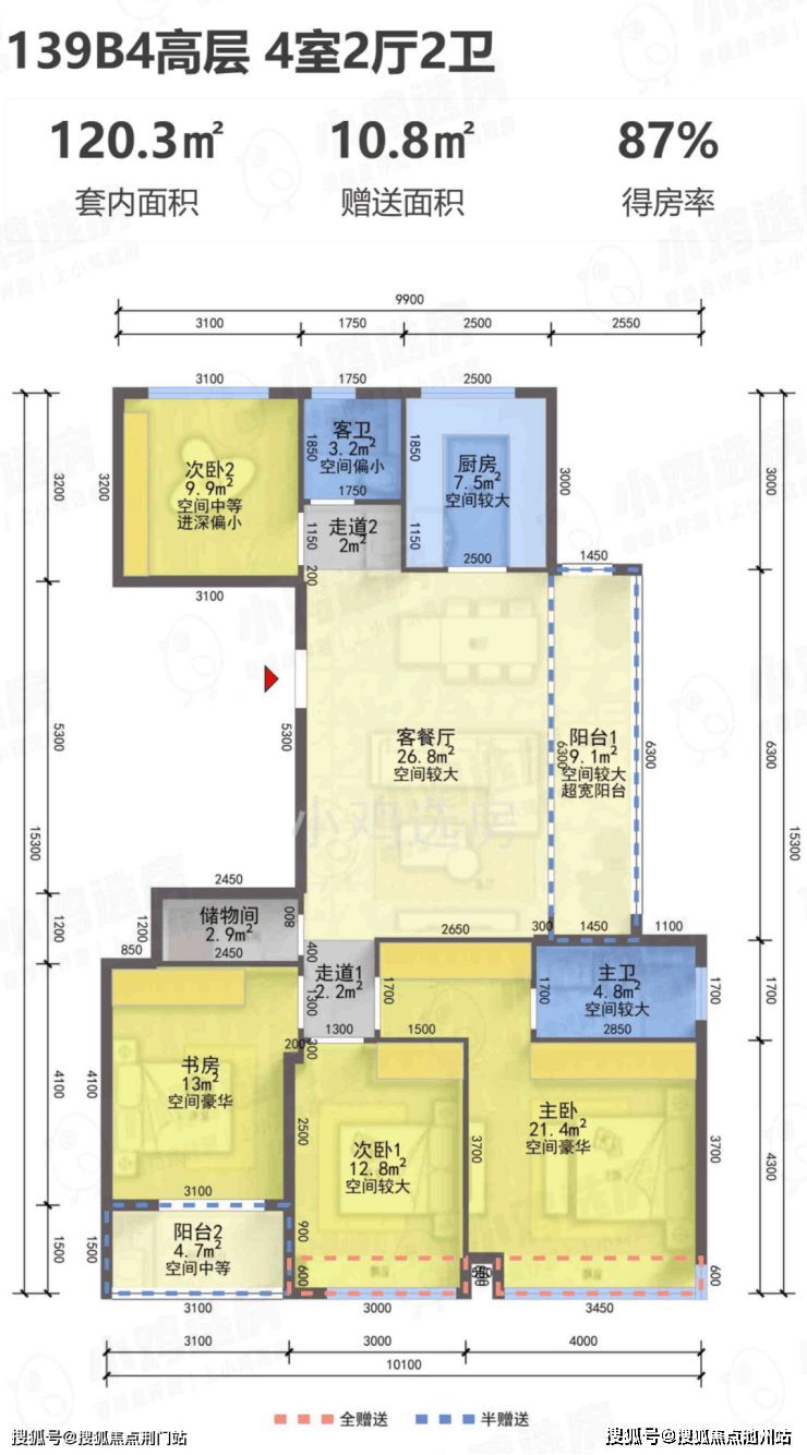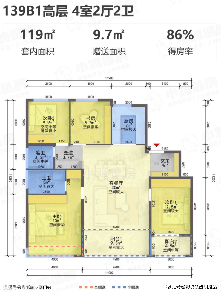 建面约139㎡B1-B5四室两厅两卫户型: