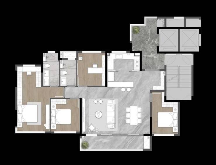 建面约126平米灵变四房,空间可塑性强,二、三、四房灵活变通。二人世界、三口之家、两孩家庭、三代同堂满足不同家庭结构的多样化生活需求。