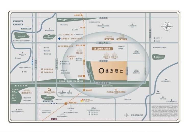 项目位置:天府新区·麓湖东 用地面积:约67亩 总户数:约688户 容积率:约2.0 产权年限:70年