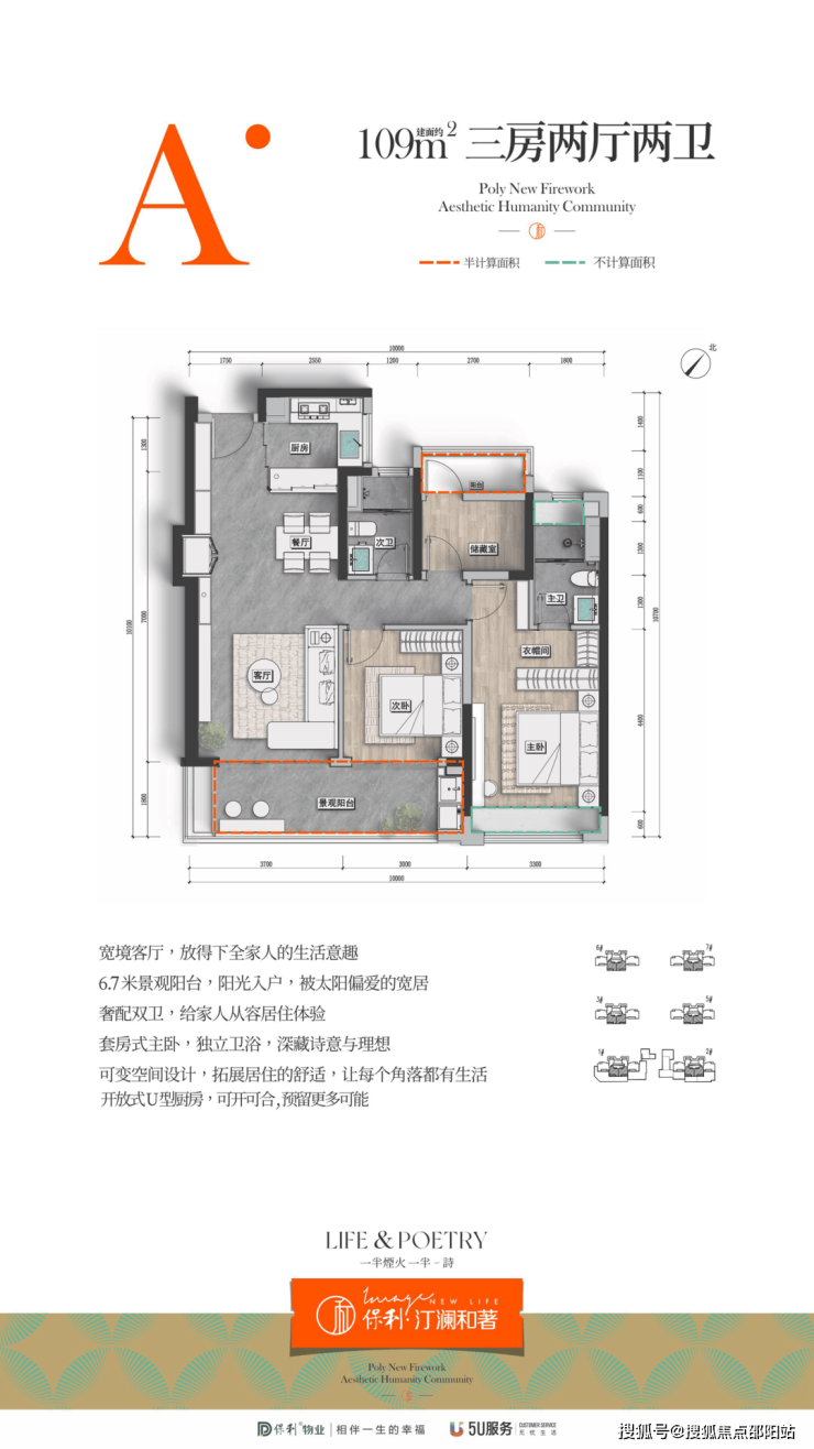 项目提供建面约109㎡三房两厅两卫、120㎡和138㎡四房两厅两卫,三个面积段可以对位不同购房群体。