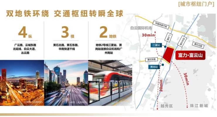 项目距江夏地铁站-C口679米,距离地铁萧岗站不到1公里,项目周边3公里范围内拥有双地铁线路,广州白云站也仅3.5公里,15分钟即可抵达越秀老城区,20分钟直达珠江新城。项目紧邻主干道和高速公路,无论是市内通勤还是省际往来,交通十分便捷。,