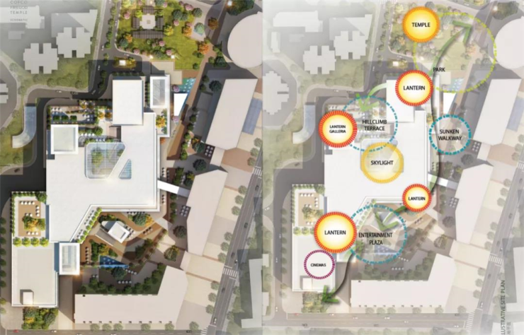 前有山,后有院 。以“前山”命名北侧外立面,在1F至7F层层叠退的阶梯上打造全景式体验,消费者可以远眺观景、可与天空对话;用“厚院”打造南边下沉广场,以双首层概念,构筑下沉景观步道,在这能片刻小坐,可嬉水滑冰。