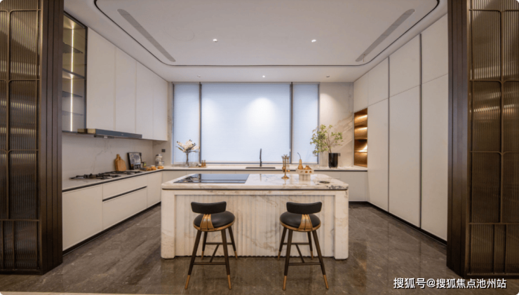 U型流线环抱岛台,无论是备制台州特色的海鲜家宴,还是为家人煮一碗暖胃姜汤面,烹饪游刃有余。太太备餐时抬眼可见客厅玩耍的孩子,先生在岛台边调酒边与家人闲话,中岛厨房盛载烟火,亦盛载温情。
