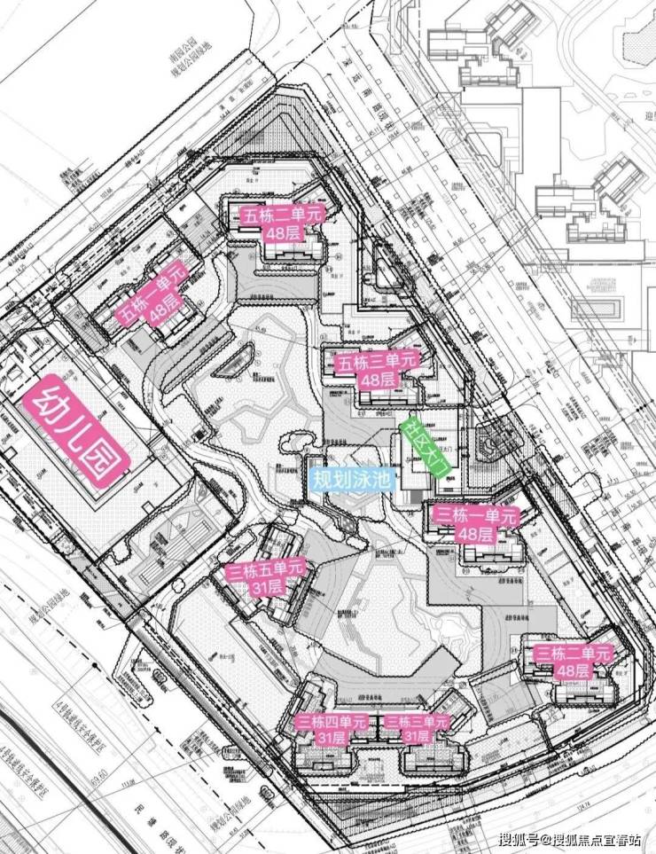 项目规划8栋楼住宅➕一栋幼儿园,其中3栋3-4-5单元是31层高,3-1-2单元以及5-1-2-3单元是48层高,总占地3.68万,总建面21.9万,计容积率16.5万㎡,容积率为4.48,总规划为1272户,停车位1405个,其中套内小于90㎡有1005套。
