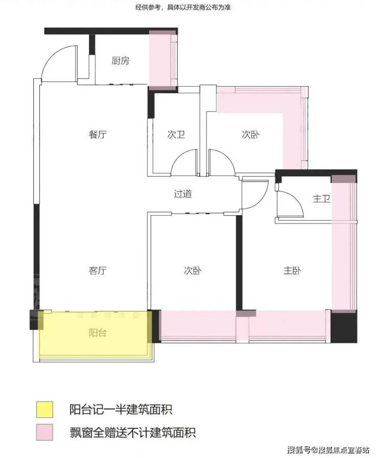 户型建面:超高层不再是一、二期建面97的三房和120的四房了,改为了建面96㎡和116㎡,也变相增加了得房率。