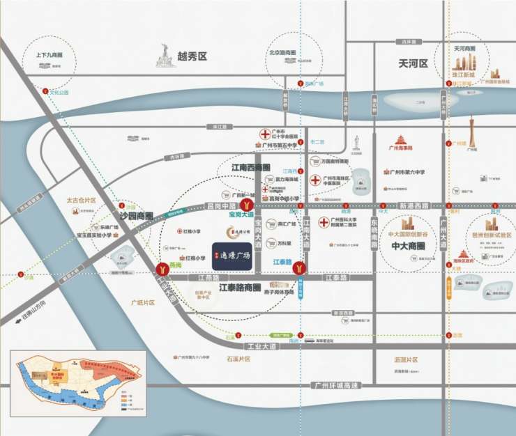 海珠城芯惟此醇熟3平方公里生活圈,汇聚三大走廊、四大商圈、多维生活配套,中冶·逸璟广场稳站城芯价值高地。
