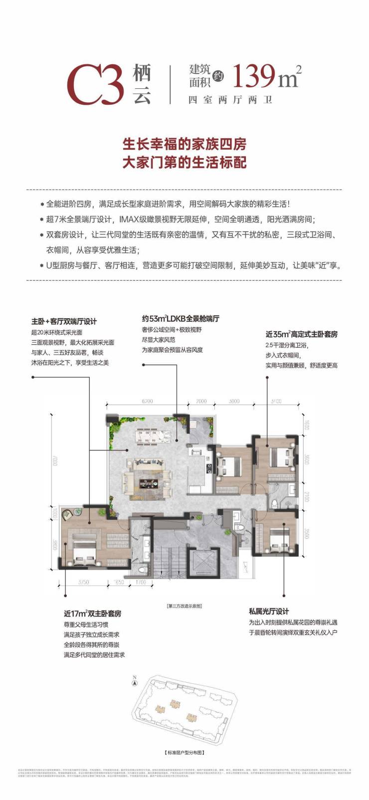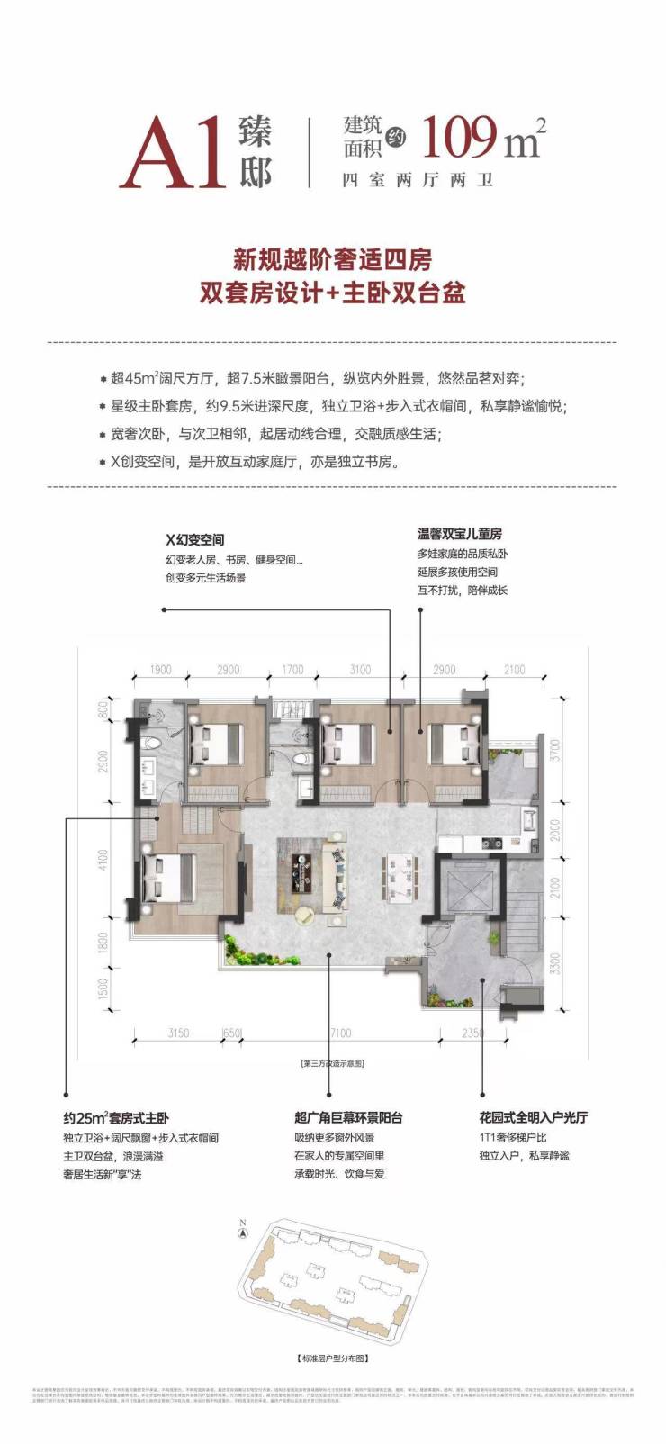 中空low-E玻璃+现代轻奢风水包砂外立面+业主会所室内恒温泳池+健身房+大面积高端石材入户大堂+仿石地砖公区过道+星空屋车库单元入户厅+全新水磨石地面+全屋交付柜体+全免费封窗。