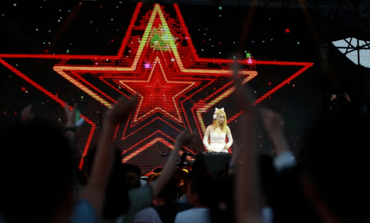 用音乐打造这场大party的DJ,以电子乐妆点夜色,与台下的、场内外的观众一起踮起脚尖,见证这场最特别的草地热舞,只待华灯初上,共同庆祝。