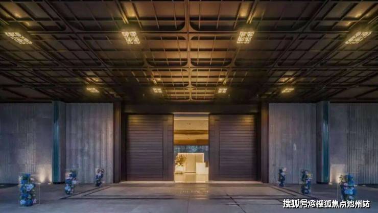 运河院子的主入口,宛如一个穿越千年的门楣。主门采用高度约4.1米、宽度约8.18米的金属古铜色电动迎宾大门。
