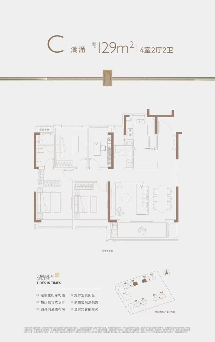 建面约129㎡真4房产品,并且四开间朝南的设计,这个户型的南向面宽和尺度感堪比别墅。