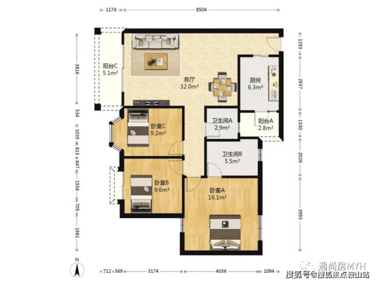 90㎡ 3房 ( 紫金园和紫荆雅园畅销)