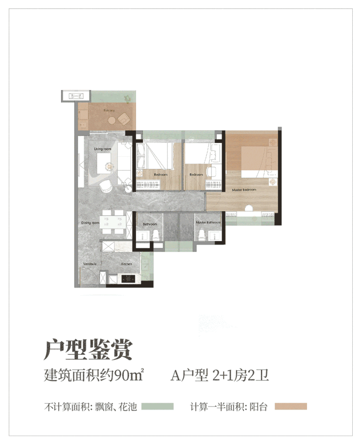 3、南向90㎡产品超宽楼间距,望中心园林,更具私密性;