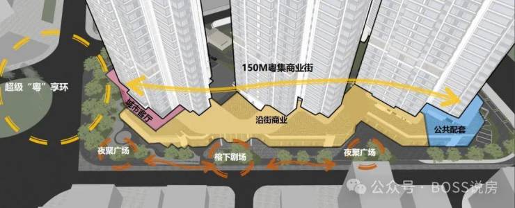 休闲空间:每栋楼都有三层的架空层,为业主提供了休闲娱乐的场所。此外,小区还自带 1000 方的商业 + 城市会客厅 + 榕树林一起打造的空间,以及街角公园和临街商铺,业主可以在这里休闲聚会,享受惬意的生活