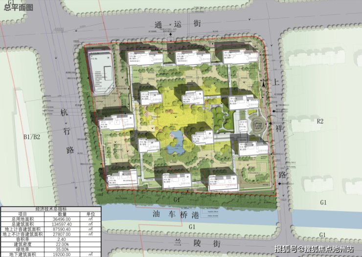 整体楼间距范围在30-40米左右,配套公建位于小区西北角,小区主入口则设于小区东侧上祥路。