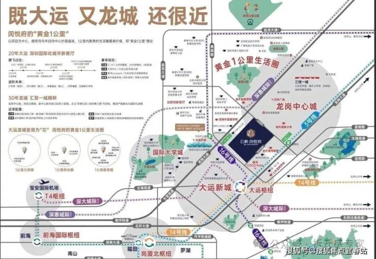 项目周边3公里范围内形成了成熟的高端商务集群,已建成万科大厦、万科时代广场、龙城金地中心、花样年龙年广场、正中时代广场等众多高端写字楼,商务氛围浓厚。同时,驾车10分钟内可达大运中心、深圳露台、国际大学城等高端文体配套,直接享受最具人文氛围和国际视野的硬核配套。