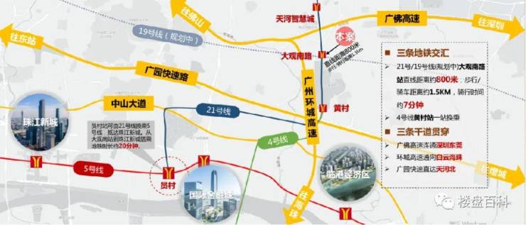 项目位于广州地铁21号线大观南路地铁站附近;扼守广州政府重点打造的全新中轴——第三中轴(科创中轴),琶洲电商/会展总部、国际金融城、天河智谷/天河智慧城高新科技产业,四大区域组合而成的广州新经济增长引擎;