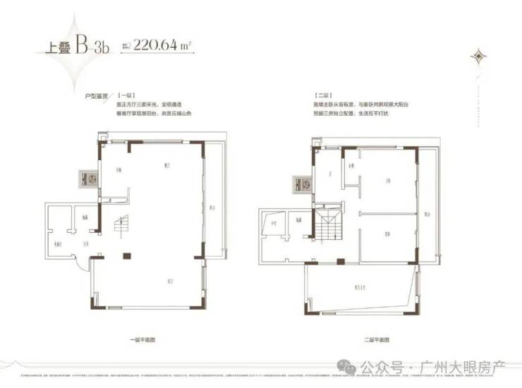 建筑面积约220-265㎡,大尺度大阳台,双层大挑空设计