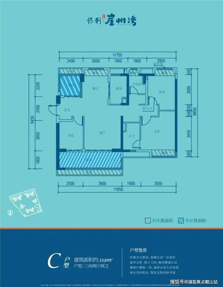 💎【在售主力户型】:108-130㎡三房🏖A1户型113㎡三房两厅两卫