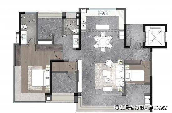 「臻享宽境」LDKB+X通透宽厅,联动约5.9米景观阳台,随心切换;