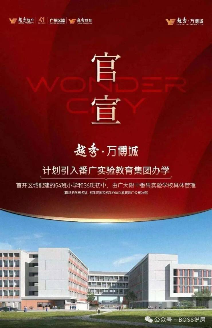 优质学校合作办学:越秀・万博城(和臻)组团配建的九年制公办学校,由广附番实具体管理,和广大附中同根同源,同教材、全龄段教育规划:项目规划 12 所学校,包含 6 所幼儿园、3 所小学、2 所初中、1 所高中,补全万博板块的教育短板、