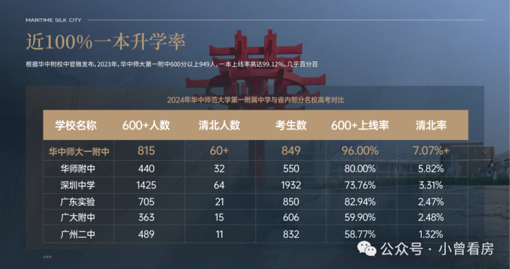 1、引入华中师大教育集团办学,学校连续六年排名全国第一,清北摇篮 (广州第一的华师附仅排名第十五),近100%一本升学率