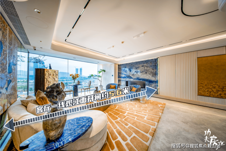 客厅一线观景面的开间宽度达到约5.6米,原生尺度就是这么大,将居住舒适度提升到大平层级的水准。