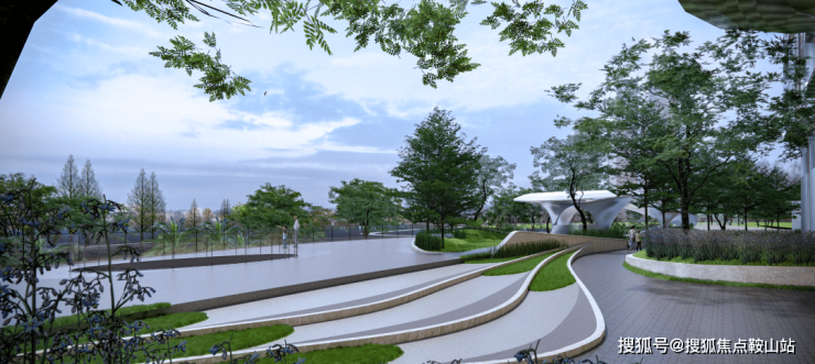 这种线性流动空间的打造,在视觉上创造了一种无限延伸的效果,连接整条滨江带,形成一个大气且动感的连续景观面。