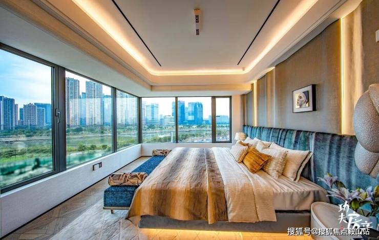 主卧270度全景落地窗,仿佛置身于度假胜地,在享受城市璀璨的同时,又能拥有远离尘嚣的宁静。