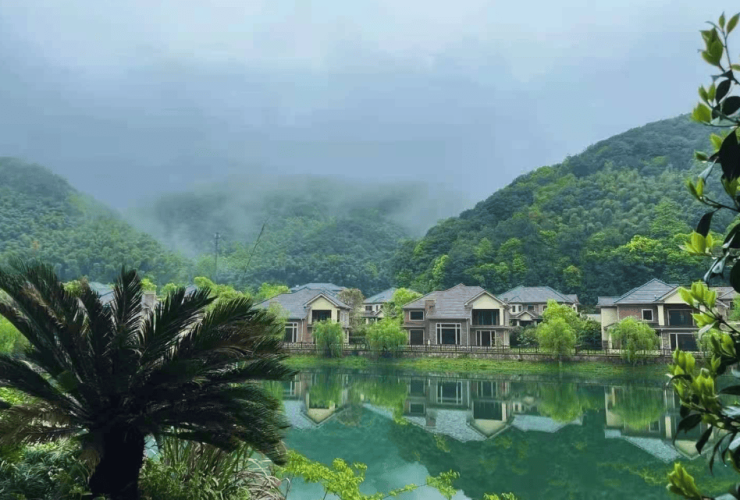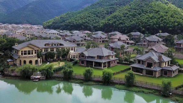 自杭州中心钱江世纪新城去往萧山城南,在大岩山风景区万亩原生森林里 (In the 10000 acre native forest of Dayan Mountain Scenic Area) 一批纯正美式大别墅已在山谷中静立,正在重构人们对大别墅、大庭院的别墅梦想。