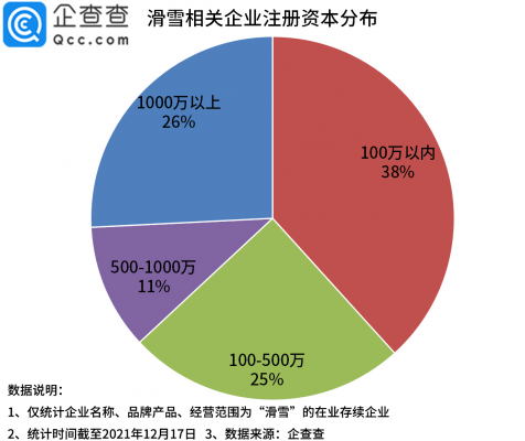 从注册资本分布来看,企查查数据显示,我国超6成滑雪企业注册资本在500万以下,其中38%的企业注册资本在100万以内,25%企业注册资本在100-500万这个区间。而注册资本在1000万以上的则占总量的26%。
