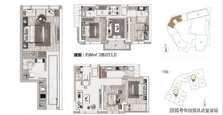 B座产品:47-85-92-115-125㎡ 1-3房云端美寓