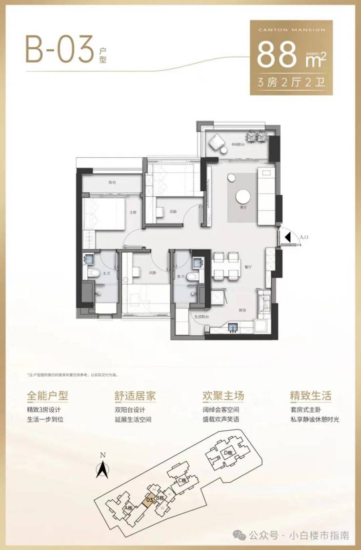 ·南向3房设计,生活一步到位