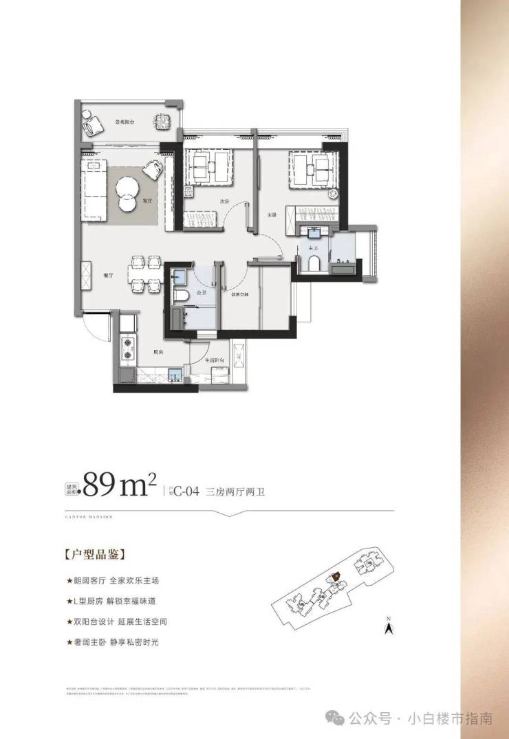 C栋04户型:89㎡ 三房两厅两卫