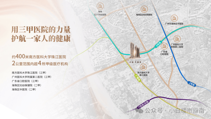 • 500米达南方医科大学珠江医院(三甲),1公里达广州医科大学附属第二医院(三甲)、南方医科大学口腔医院(三甲),步行最完善医疗体系,健康生活头等重要。