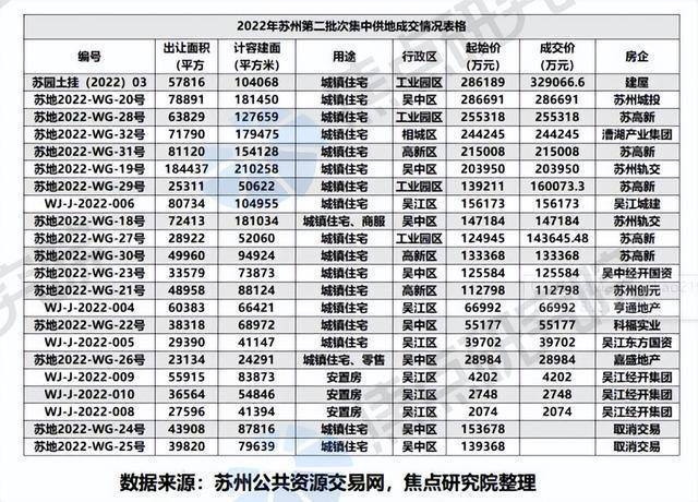 焦点财经讯 耿宸斐 6月23日,苏州2022年第二批次集中供地20宗涉宅用地全部成交,成交金额271.3亿元。3宗地进入一次报价阶段,其余地块均底价成交。