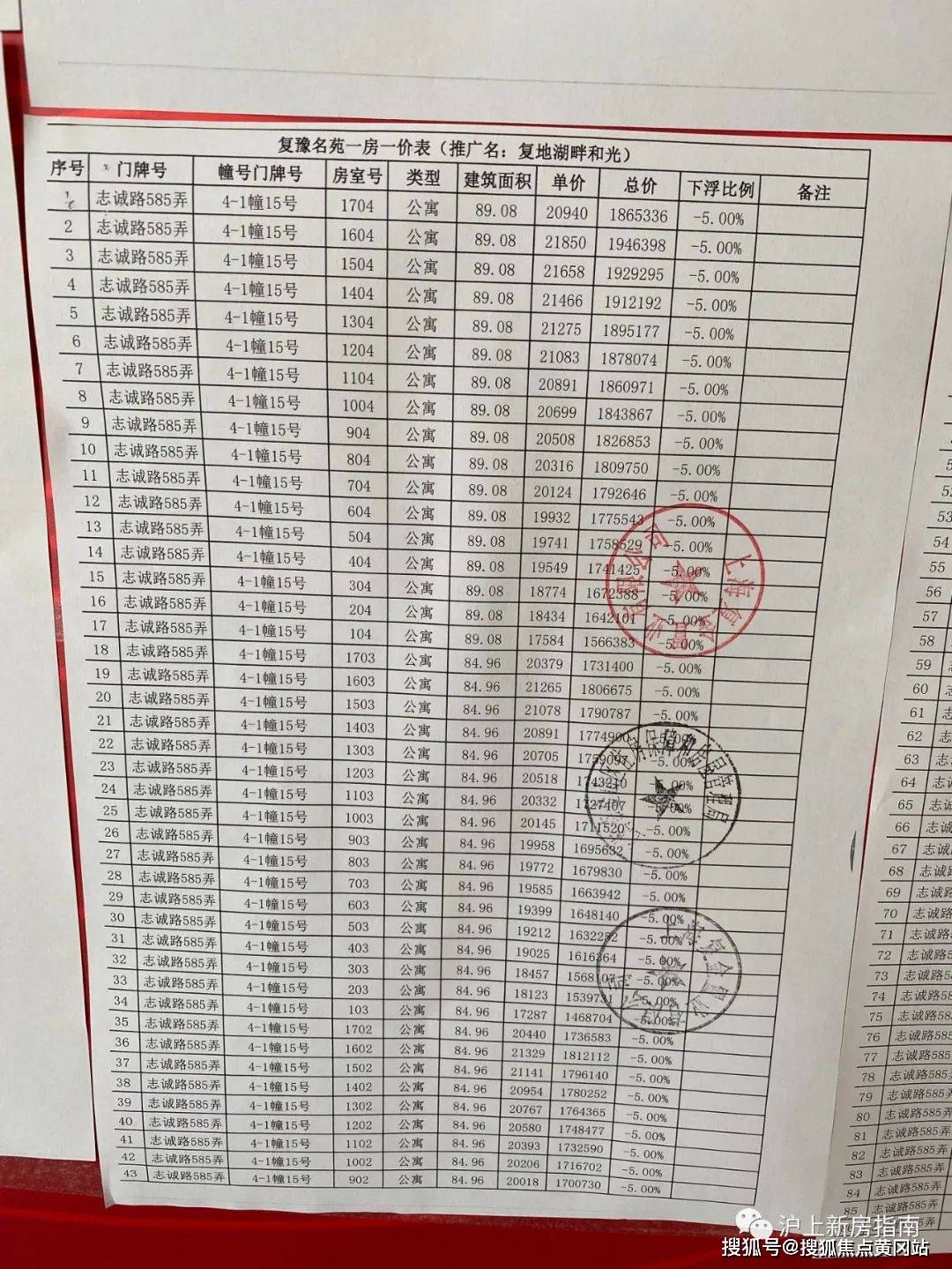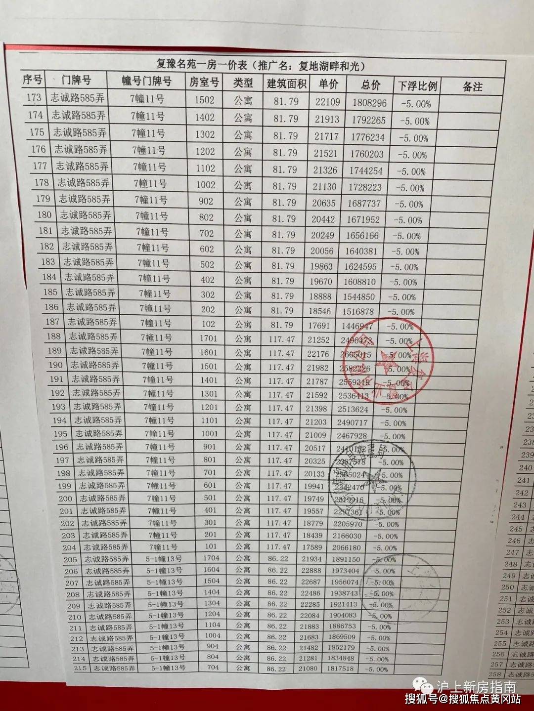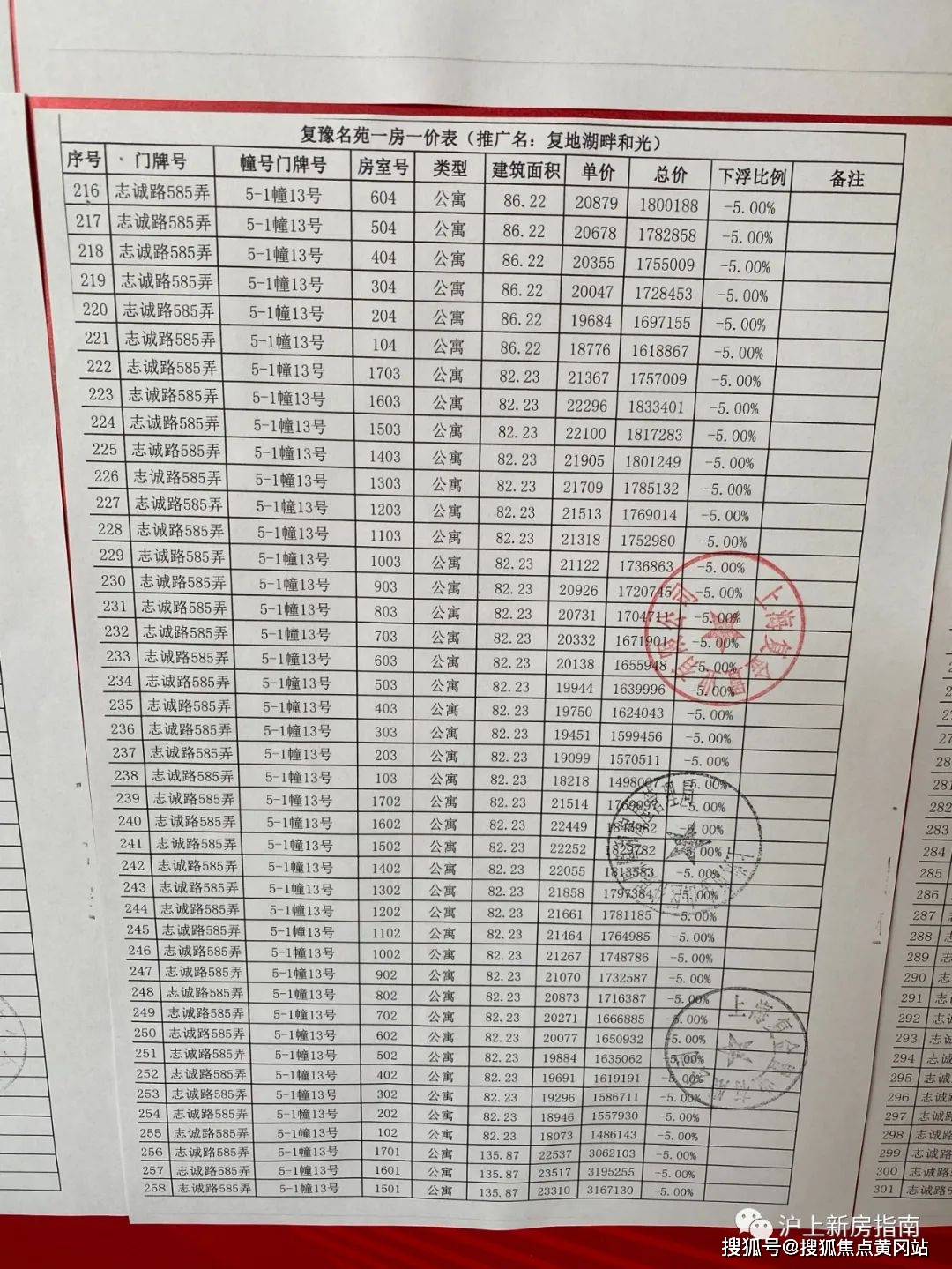 一房一价表