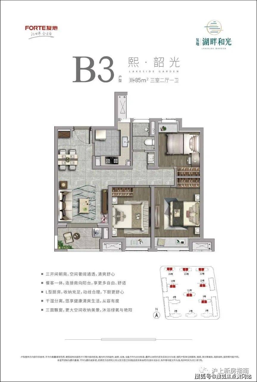 建面85平三房两厅一卫(102套)