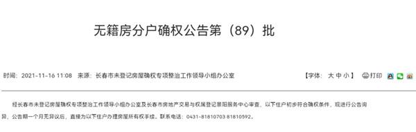 11月16日,长春市住房保障和房屋管理局网站发布较新公告。