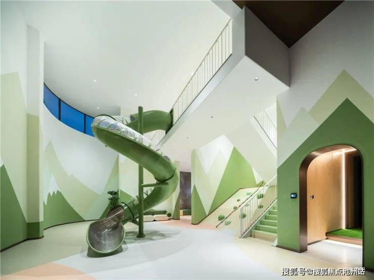 整个会所体系约2000㎡,包含了私宴厅、健身房、行政酒廊、冥想室等。其中架空层打造的泛会所涵盖了儿童学习、儿童游乐、成人休闲等区域。