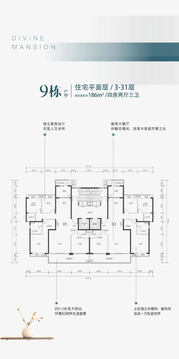 毗邻约176万㎡红树林湿地公园,享受上亿个负氧离子净化。栖址山麓,北望约50万㎡虎头山公园;对望一线淡澳河河景开阔视野,枕月光入眠。登山,望林,瞰水,游园,体验城央之上的悠然之境。