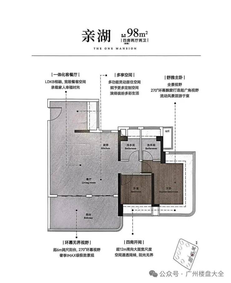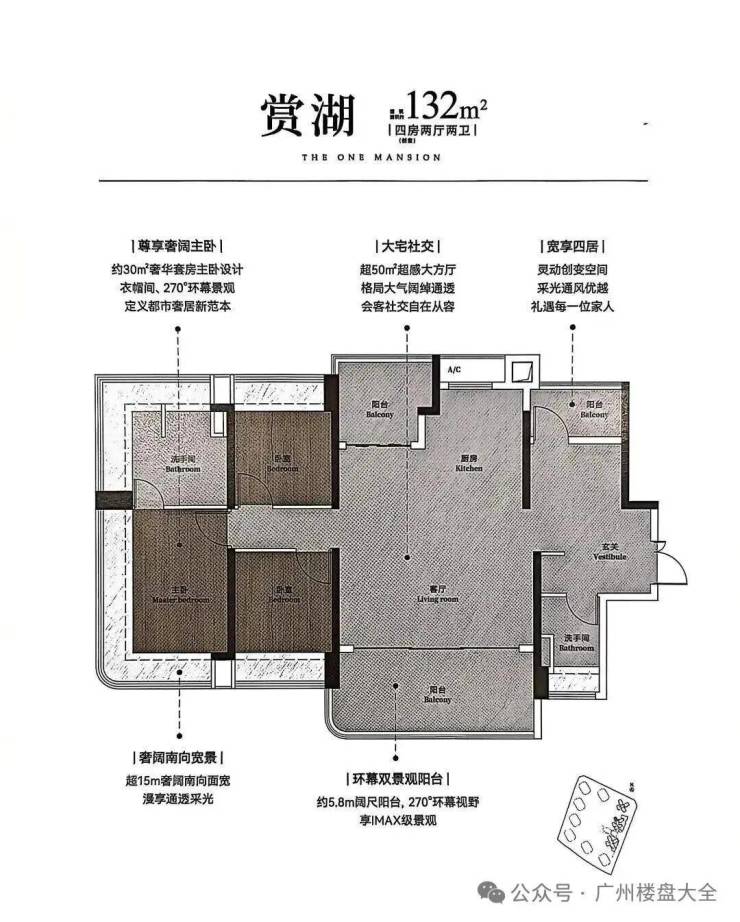 2、132-148㎡楼王户型:270°弧形玻璃幕墙,金山湖景尽收眼底!