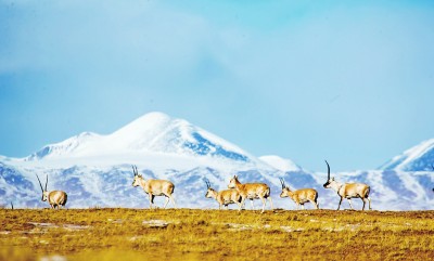 三江源国家公园内的藏羚羊群。赵新录摄/光明图片