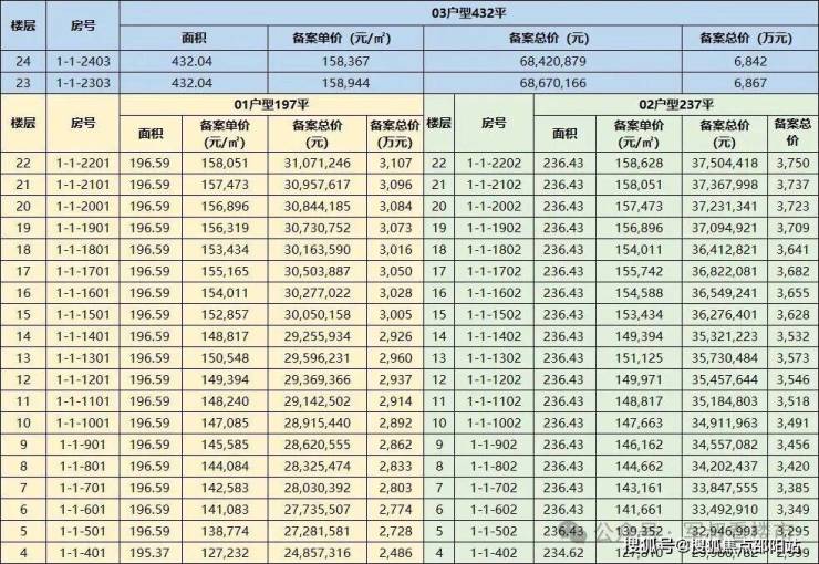 备案单价12.7-15.8万/㎡,开盘前也是给出很优惠折扣!明细:
