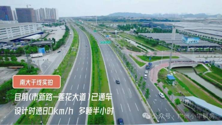项目距离南大干线750m,双向6-8车道,限速80km/h,接驳新化快速,畅达广州主城区: