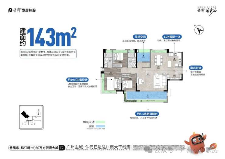 约20方豪华主套,L型全景飘窗